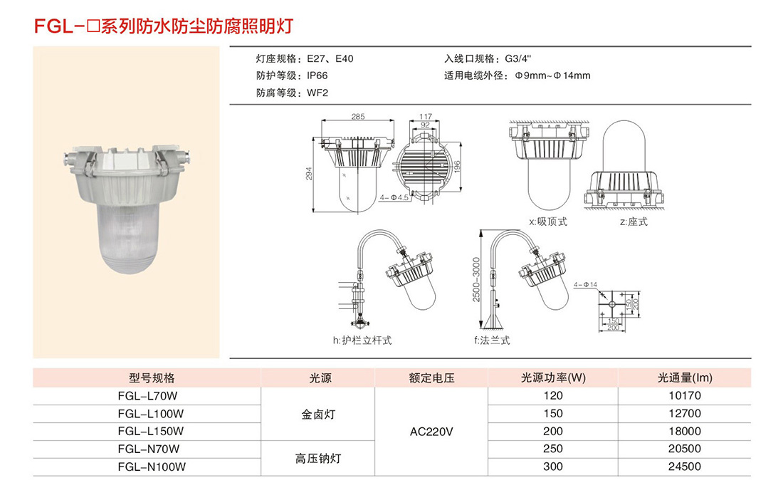 FGL-□防水防尘防腐照明灯